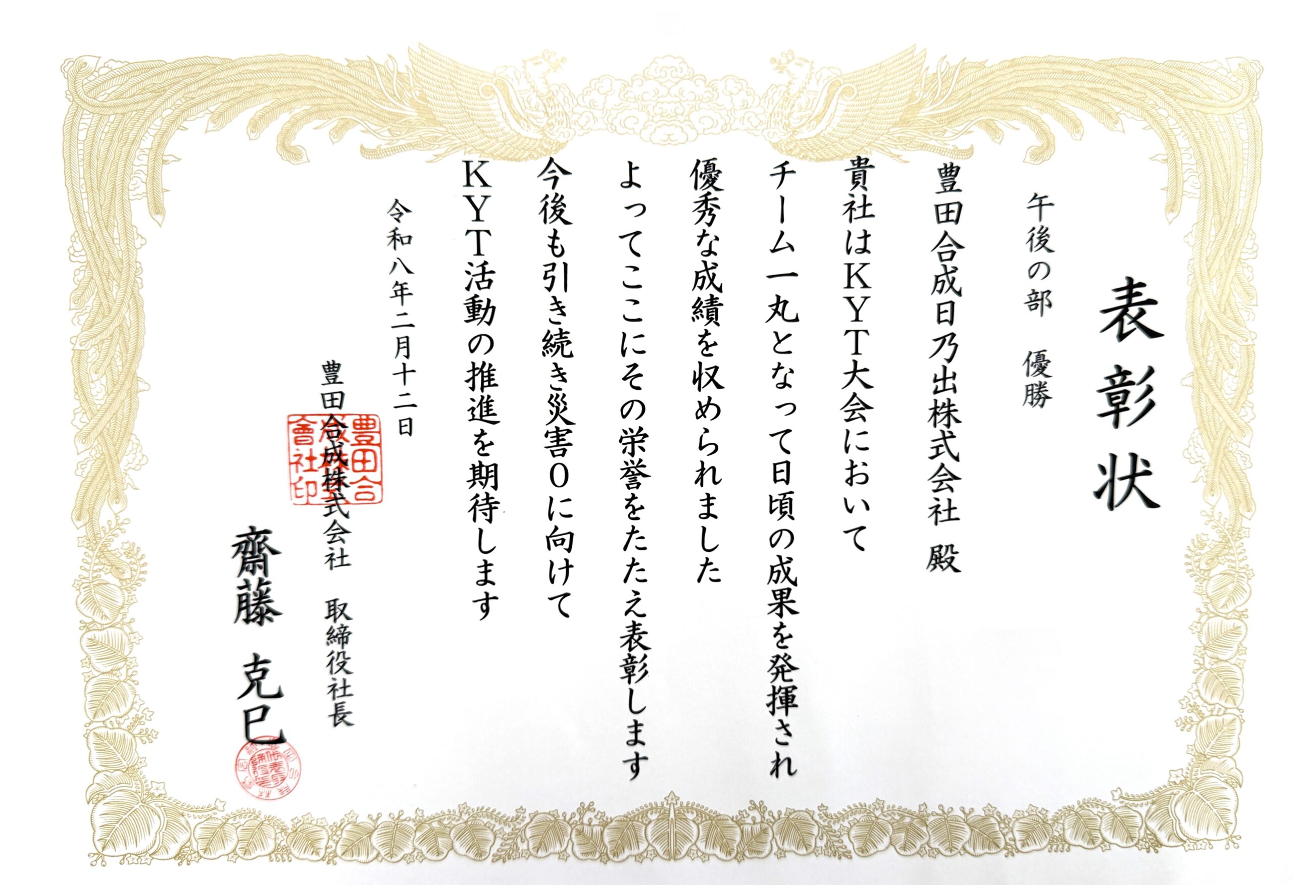 豊田合成国内関係会社 KYT大会(午後の部)優勝しました🏅